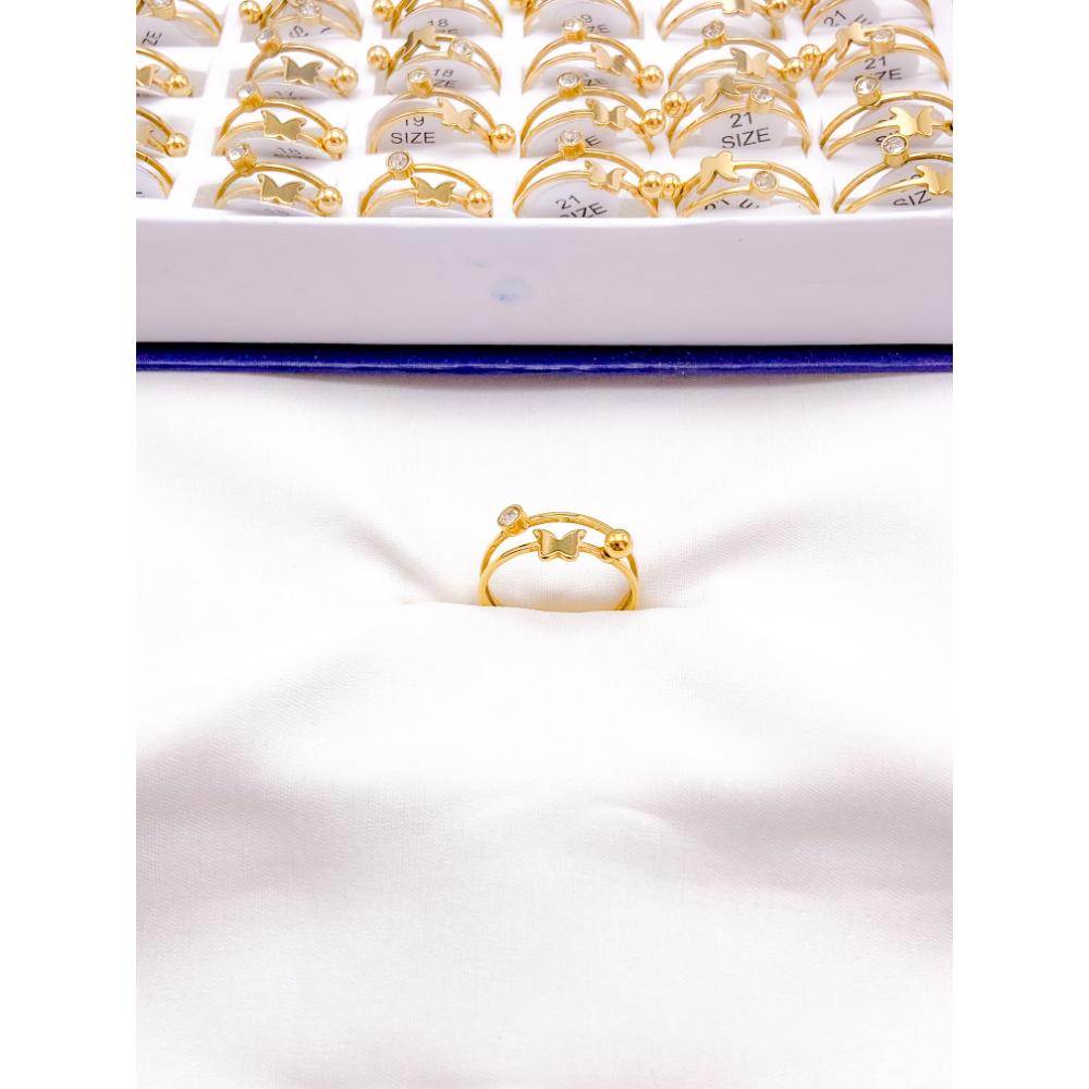 ANEL AÇO INOXIDÁVEL 2 FIOS BORBOLETA E PEDRA CRISTAL - DOURADO
