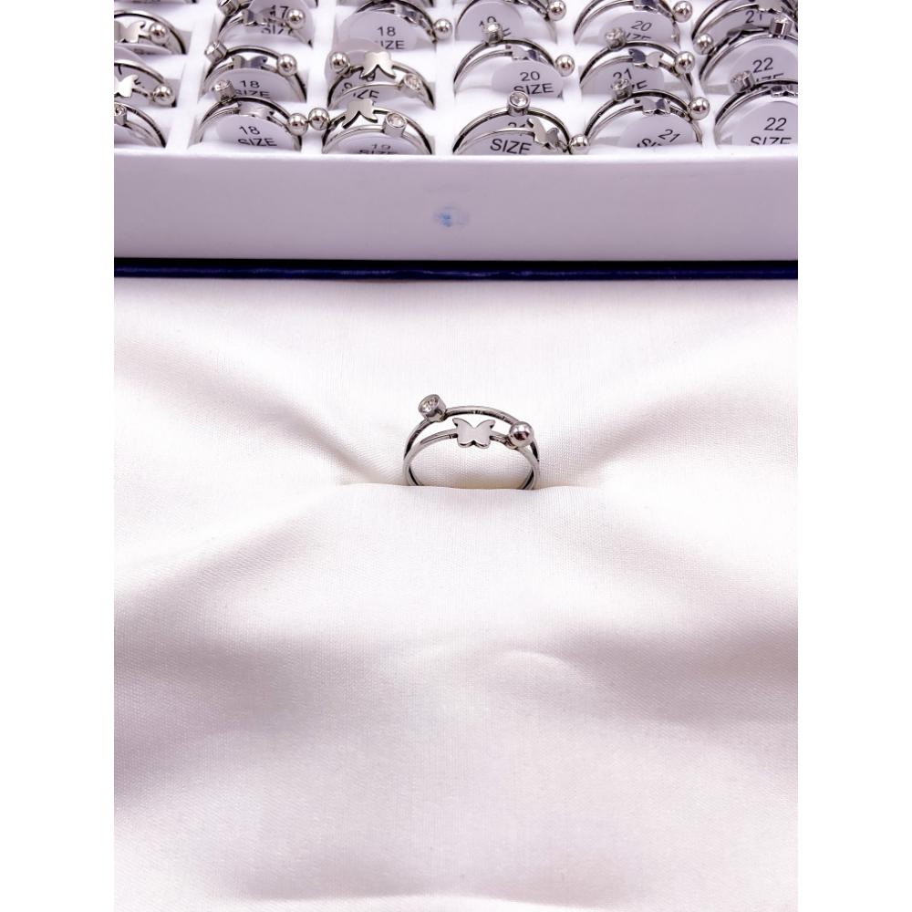 ANEL AÇO INOXIDÁVEL 2 FIOS BORBOLETA E PEDRA CRISTAL - PRATEADO