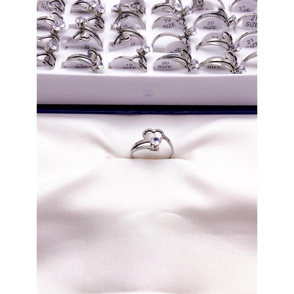ANEL AÇO INOXIDÁVEL CORAÇÃO E PEDRA CRISTAL - PRATEADO