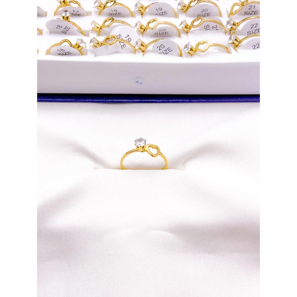 ANEL AÇO INOXIDÁVEL CORAÇÃO PEDRA CRISTAL - DOURADO