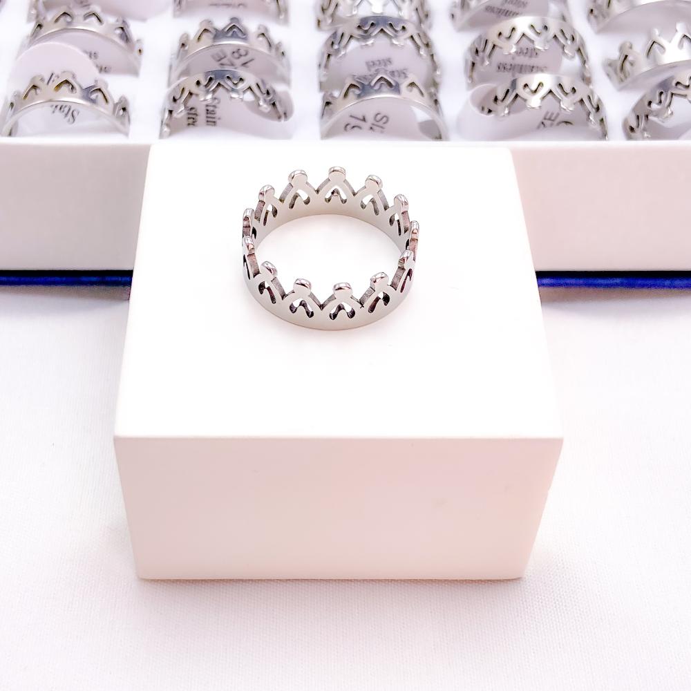 ANEL AÇO INOXIDÁVEL COROA CORAÇÃO - PRATEADO