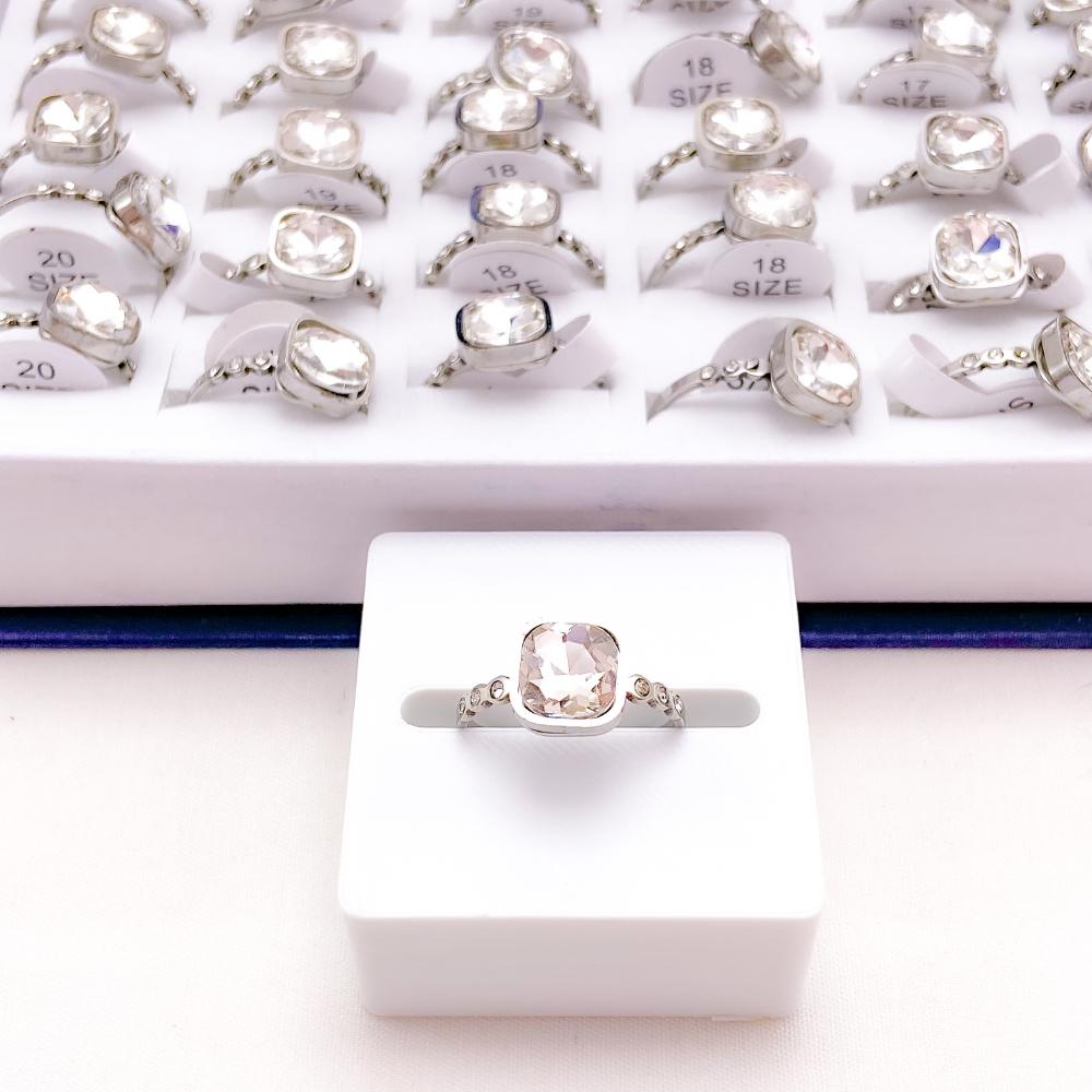 ANEL AÇO INOXIDÁVEL CRAVEJADO PEDRA CRISTAL - PRATEADO