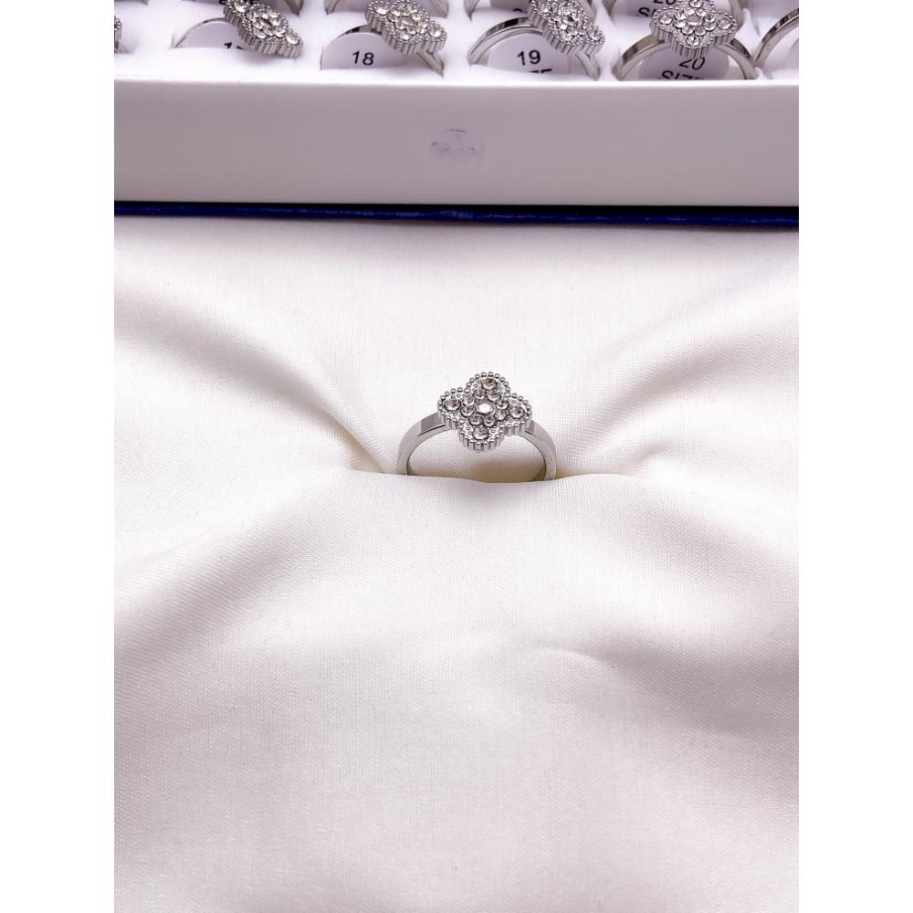 ANEL AÇO INOXIDÁVEL TREVO CRAVEJADO PEDRA CRISTAL - PRATEADO