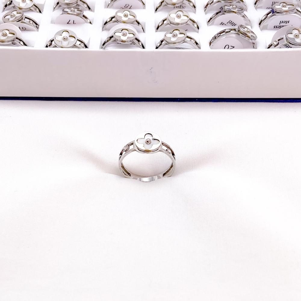 ANEL  AÇO INOXIDÁVEL TREVO PEROLADO - PRATEADO