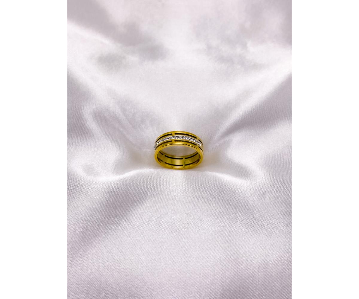 ANEL AÇO INOXIDÁVEL 2 FIOS CRAVEJADO PEDRA CRISTAL - DOURADO