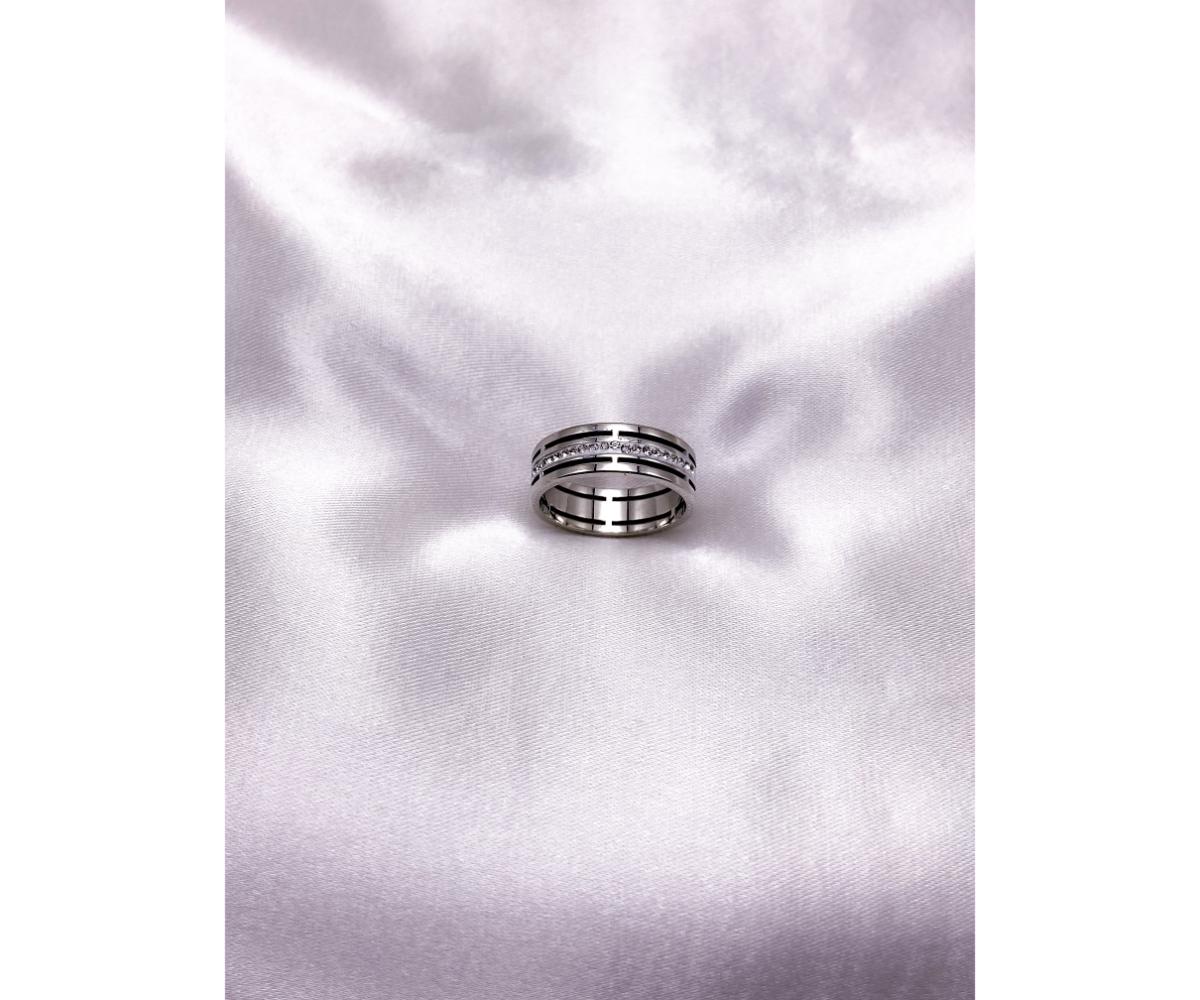 ANEL AÇO INOXIDÁVEL 2 FIOS CRAVEJADO PEDRA CRISTAL - PRATEADO