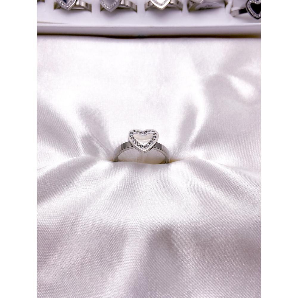 ANEL AÇO INOXIDÁVEL CORAÇÃO CRAVEJADO - PRATEADO (UNIDADE)