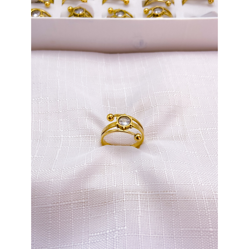 ANEL  AÇO INOXIDÁVEL PEDRA CRISTAL CRAVEJADO - DOURADO (UNIDADE)