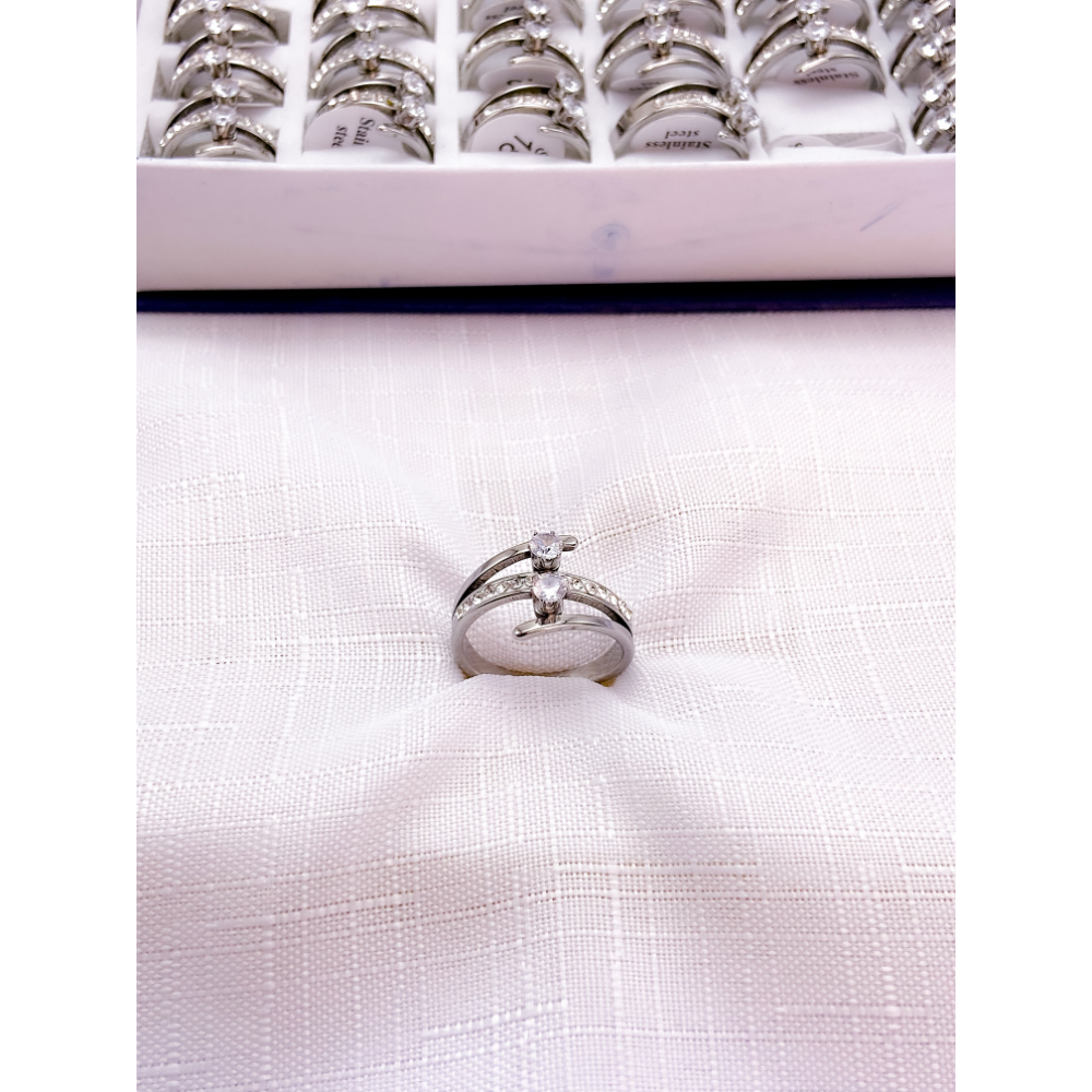 ANEL AÇO INOXIDÁVEL PEDRA CRISTAL CRAVEJADO - PRATEADO (UNIDADE)