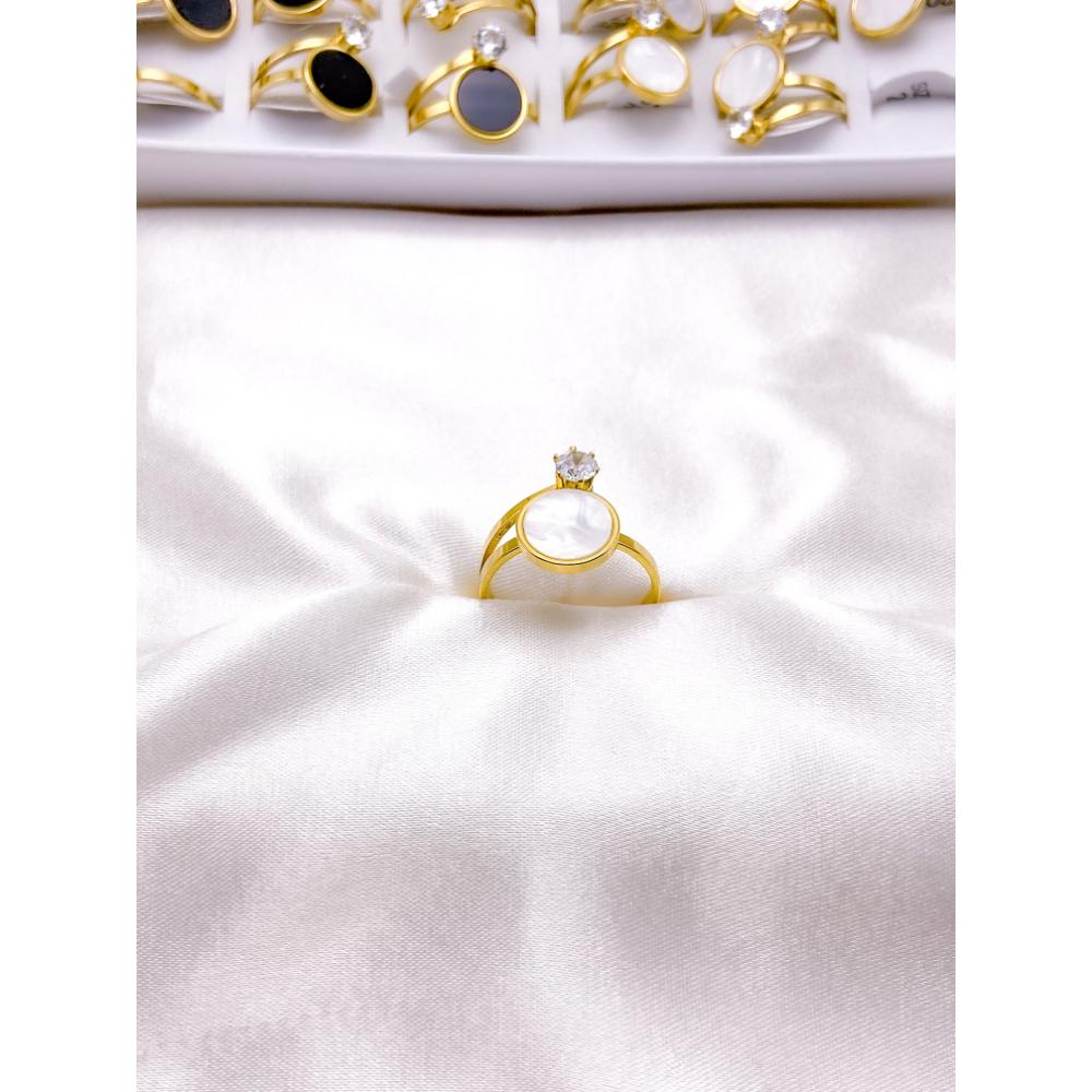ANEL AÇO INOXIDÁVEL PEDRA CRISTAL PEROLADO - DOURADO (UNIDADE)