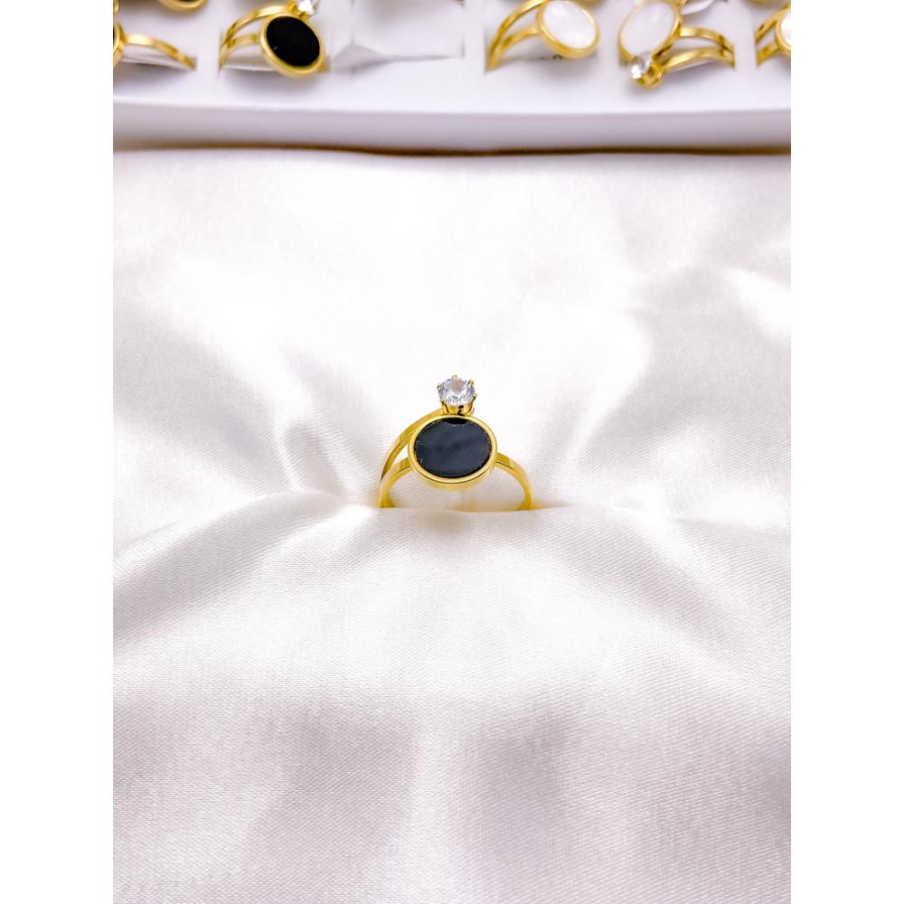 ANEL AÇO INOXIDÁVEL PEDRA CRISTAL PRETO - DOURADO (UNIDADE)