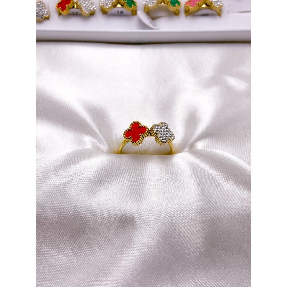 PRODUTO: ANEL AÇO INOXIDÁVEL TREVO CRAVEJADO DOURADO - ROSA