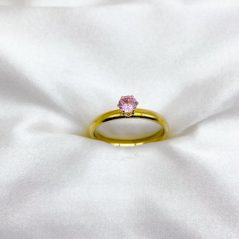 PRODUTO: ANEL TIPO SOLITÁRIO DOURADO - PEDRA ROSA (UNIDADE)
