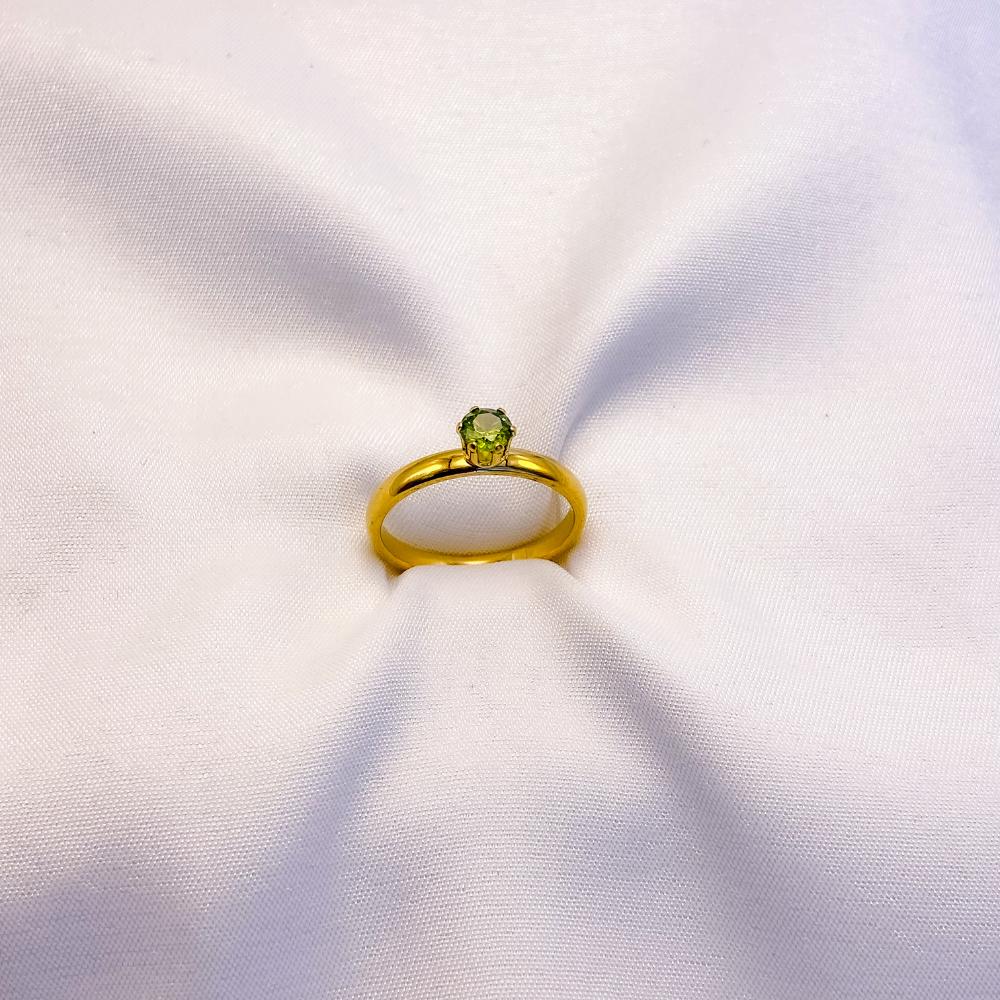 ANEL TIPO SOLITÁRIO DOURADO - PEDRA VERDE CLARO (UNIDADE)
