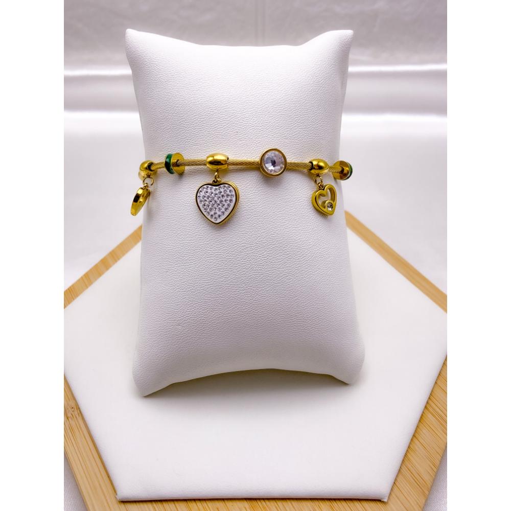 PRODUTO: BRACELETE AÇO INOX CORAÇÃO CRAVEJADO FECHO DE IMÃ - DOURADA