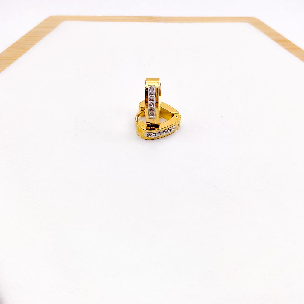PRODUTO: BRINCO AÇO INOX ARGOLINHA CLICK CORAÇÃO CRAVEJADO STRASS - DOURADO