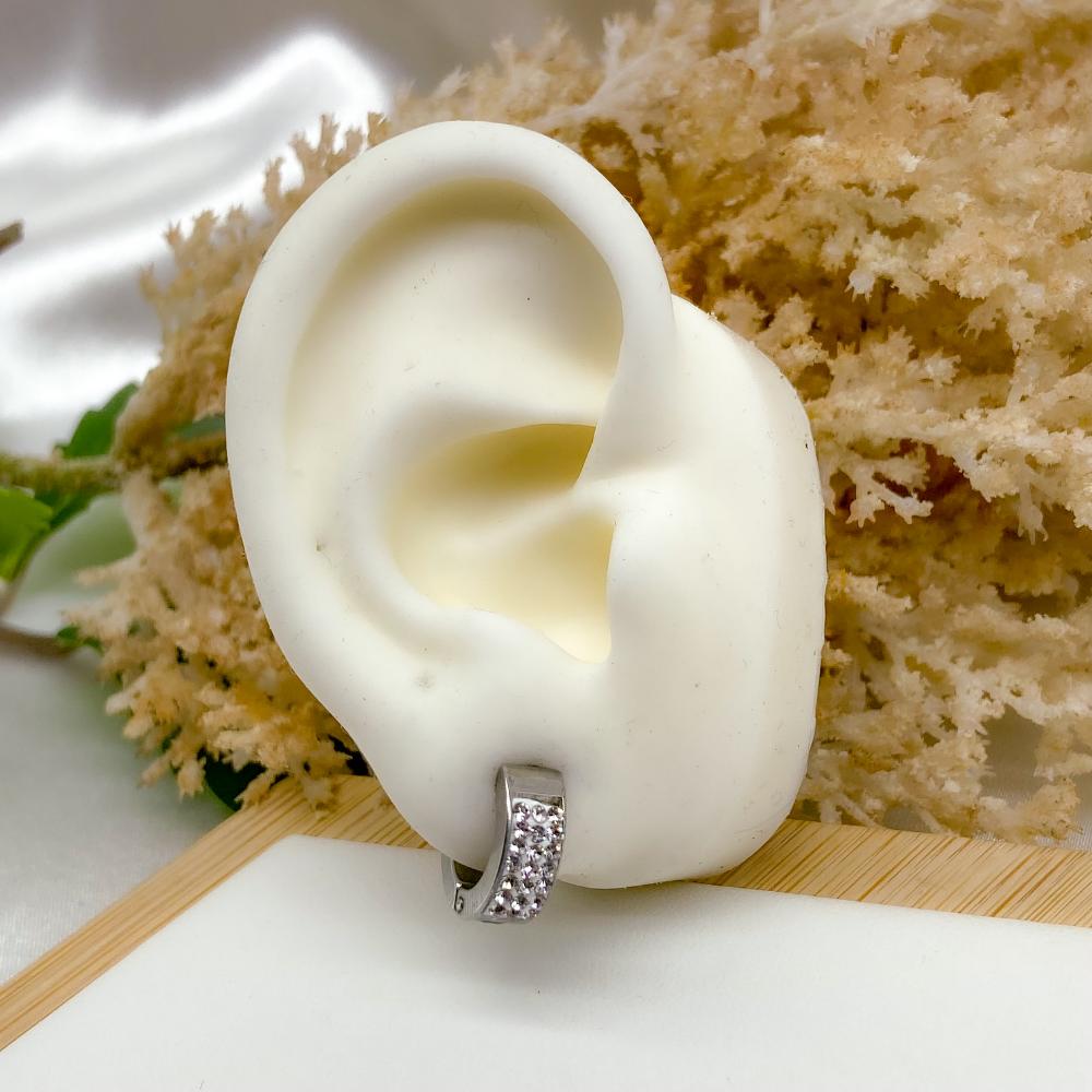 PRODUTO: BRINCO AÇO INOX ARGOLINHA CLICK CRAVEJADA STRASS 3 FIOS - PRATEADA