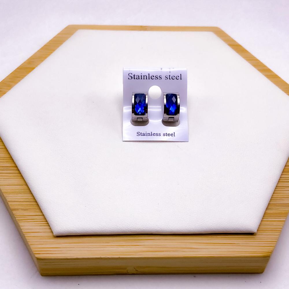 PRODUTO: BRINCO AÇO INOX ARGOLINHA CLICK PRATEADO - AZUL