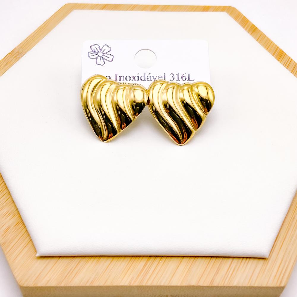 PRODUTO: BRINCO AÇO INOX CORAÇÃO COM DETALHES - DOURADO