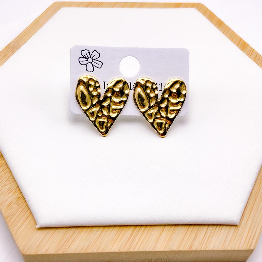 PRODUTO: BRINCO AÇO INOX CORAÇÃO COM DETALHES - DOURADO