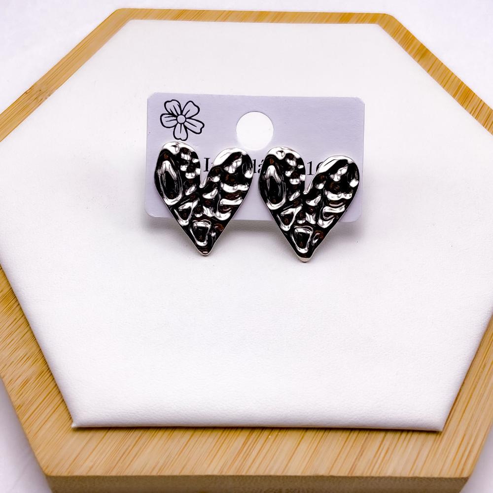 PRODUTO: BRINCO AÇO INOX CORAÇÃO COM DETALHES - PRATEADO