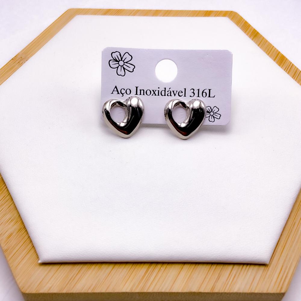 PRODUTO: BRINCO AÇO INOX ESTILO CORAÇÃO VAZADO - PRATEADO