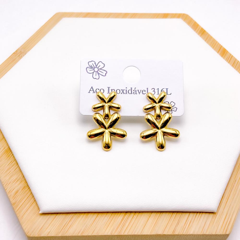 PRODUTO: BRINCO AÇO INOX FLOR - DOURADO