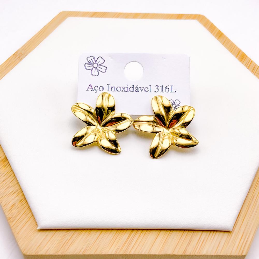 PRODUTO: BRINCO AÇO INOX FLOR - DOURADO