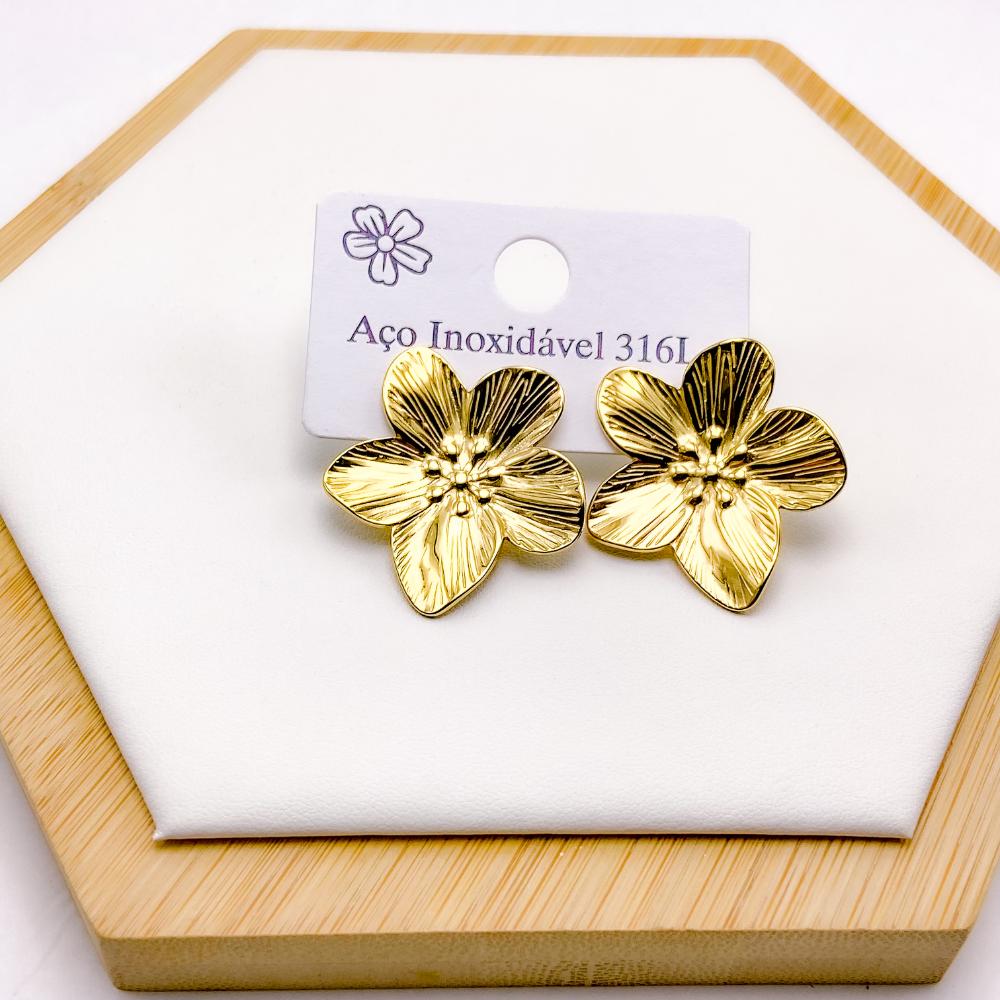 PRODUTO: BRINCO AÇO INOX FLOR - DOURADO