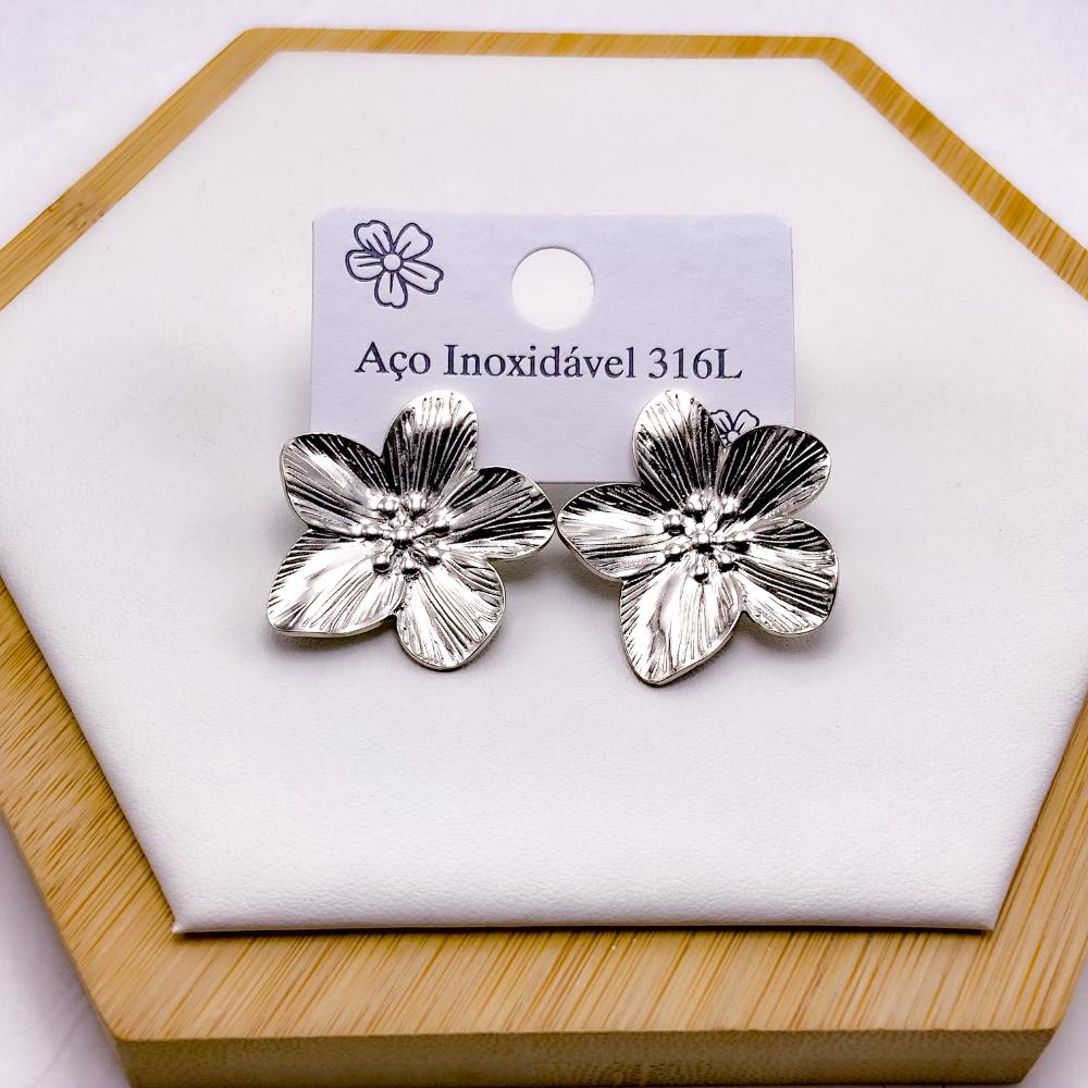 PRODUTO: BRINCO AÇO INOX FLOR - PRATEADO