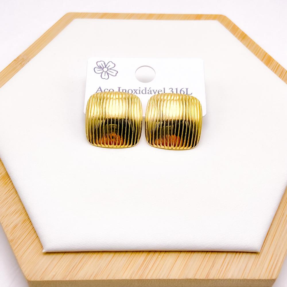 PRODUTO: BRINCO AÇO INOX GEOMETRICO COM DETALHES - DOURADO