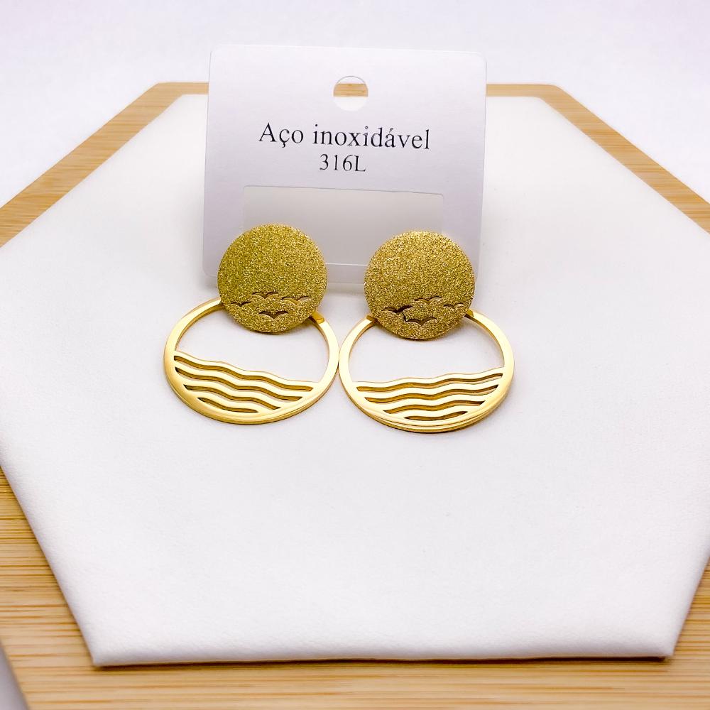 PRODUTO: BRINCO AÇO INOX GEOMETRICO - DOURADO