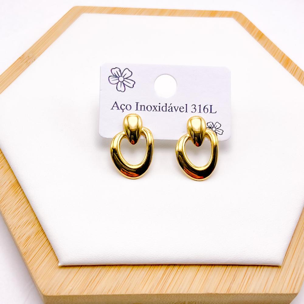 PRODUTO: BRINCO AÇO INOX  GEOMETRICO - DOURADO