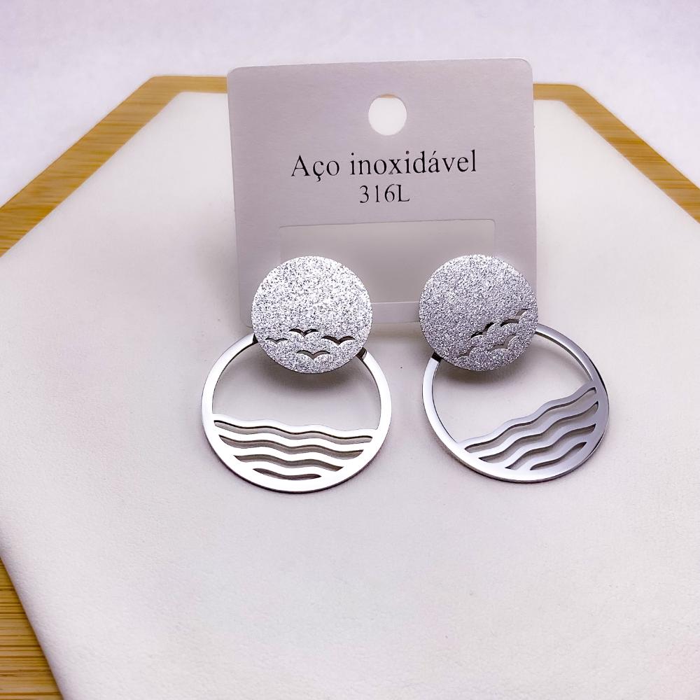 PRODUTO: BRINCO AÇO INOX GEOMETRICO - PRATEADO