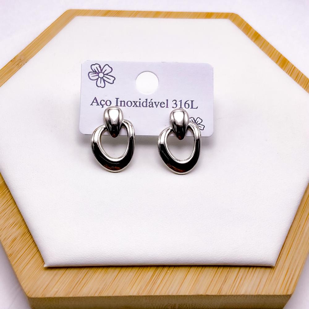 PRODUTO: BRINCO AÇO INOX GEOMETRICO - PRATEADO