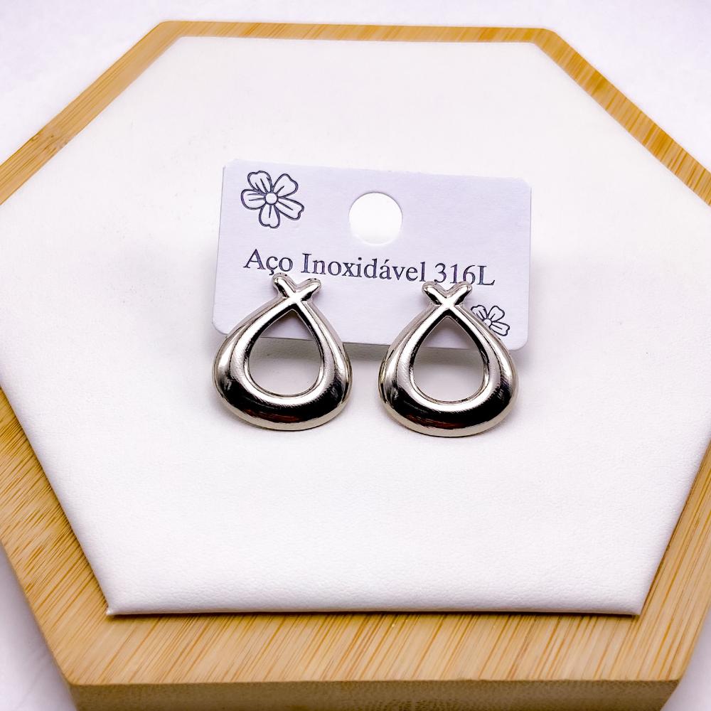 PRODUTO: BRINCO AÇO INOX GEOMETRICO - PRATEADO