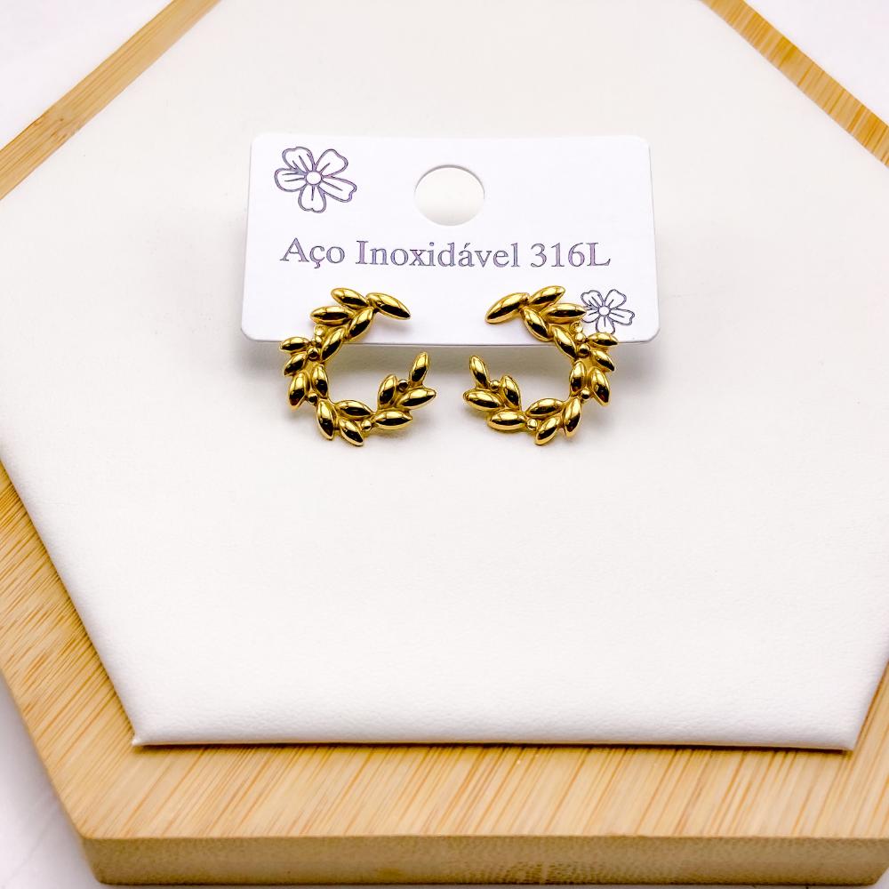 PRODUTO: BRINCO AÇO INOX MINI FOLHAS - DOURADO