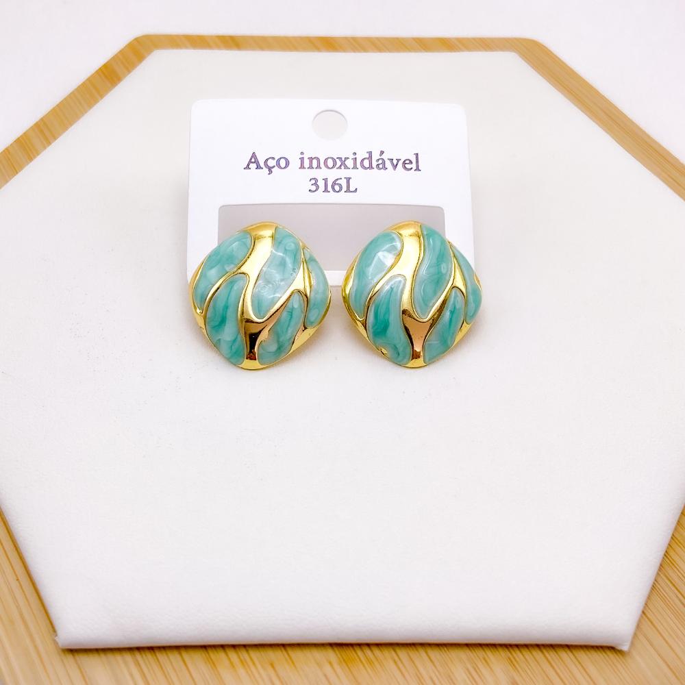 PRODUTO: BRINCO AÇO INOX REDONDO RESINADO DOURADO - VERDE