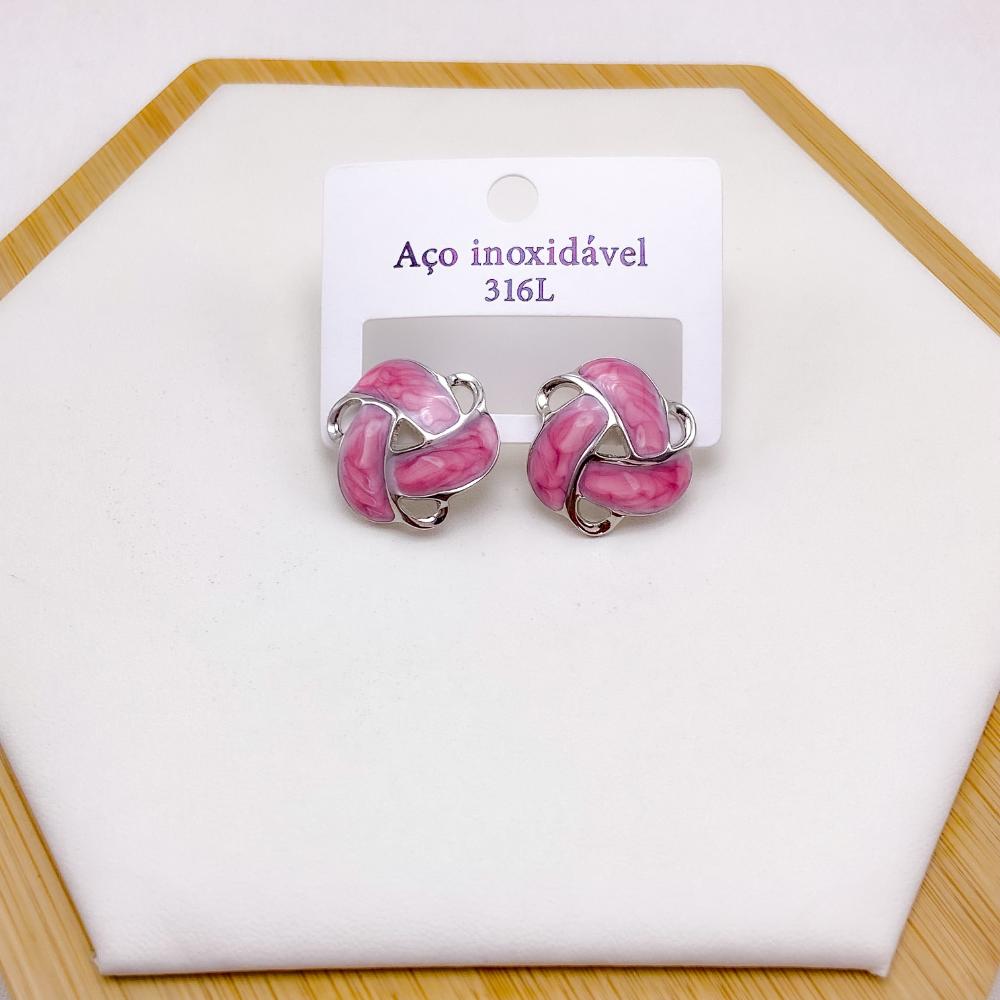 PRODUTO: BRINCO AÇO INOX REDONDO RESINADO PRATEADO - PEROLADO