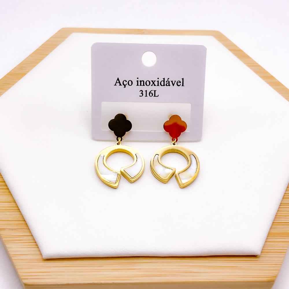 PRODUTO: BRINCO AÇO INOX TREVO PEROLADO - DOURADO