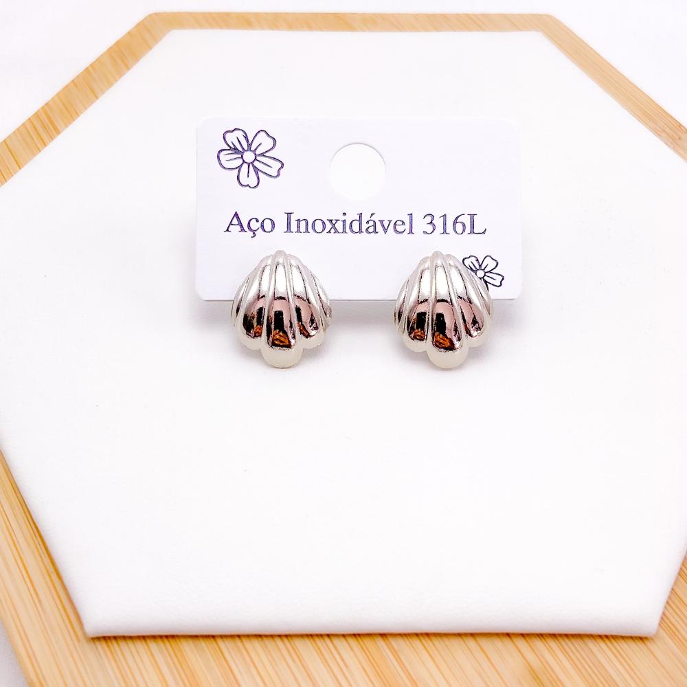 PRODUTO: BRINCO AÇO INOXIDÁVEL CONCHA MODA PRAIA - PRATEADO