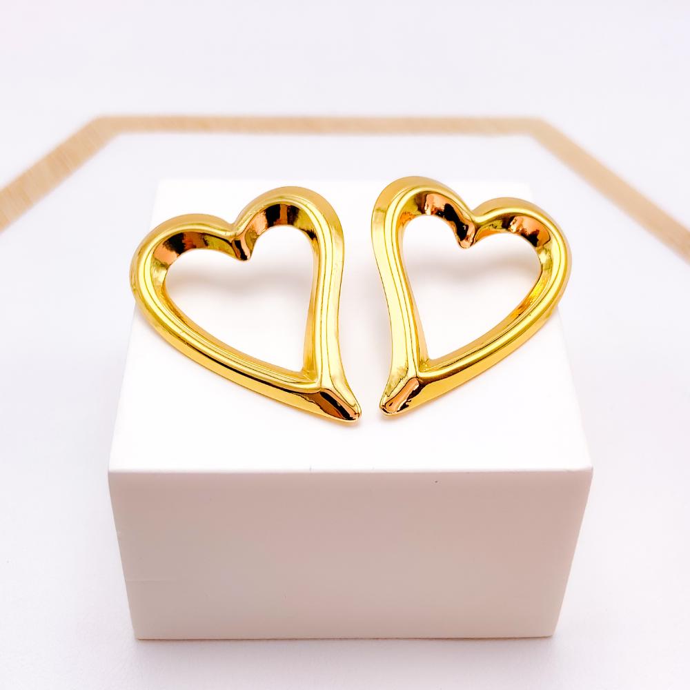 PRODUTO: BRINCO AÇO INOXIDÁVEL CORAÇÃO VAZADO - DOURADO