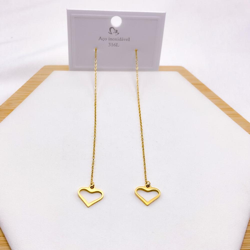 PRODUTO: BRINCO AÇO INOXIDAVEL CORRENTE CORAÇÃO ESTILO ALFINETE - DOURADO