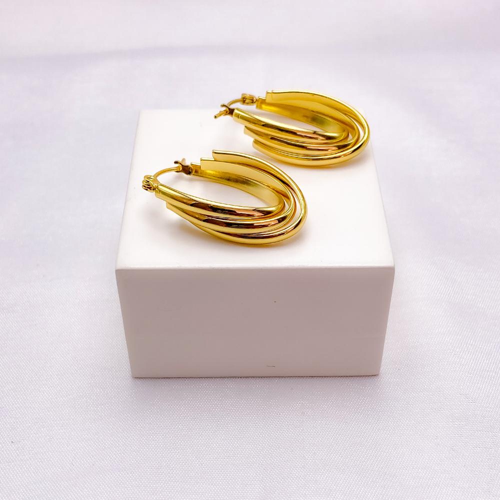 BRINCO AÇO INOXIDÁVEL GEOMÉTRICO OVAL 3 FIOS LISO - DOURADO