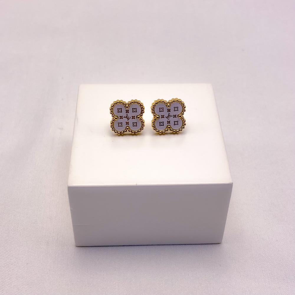 BRINCO AÇO INOXIDÁVEL TREVO BRANCO - DOURADO