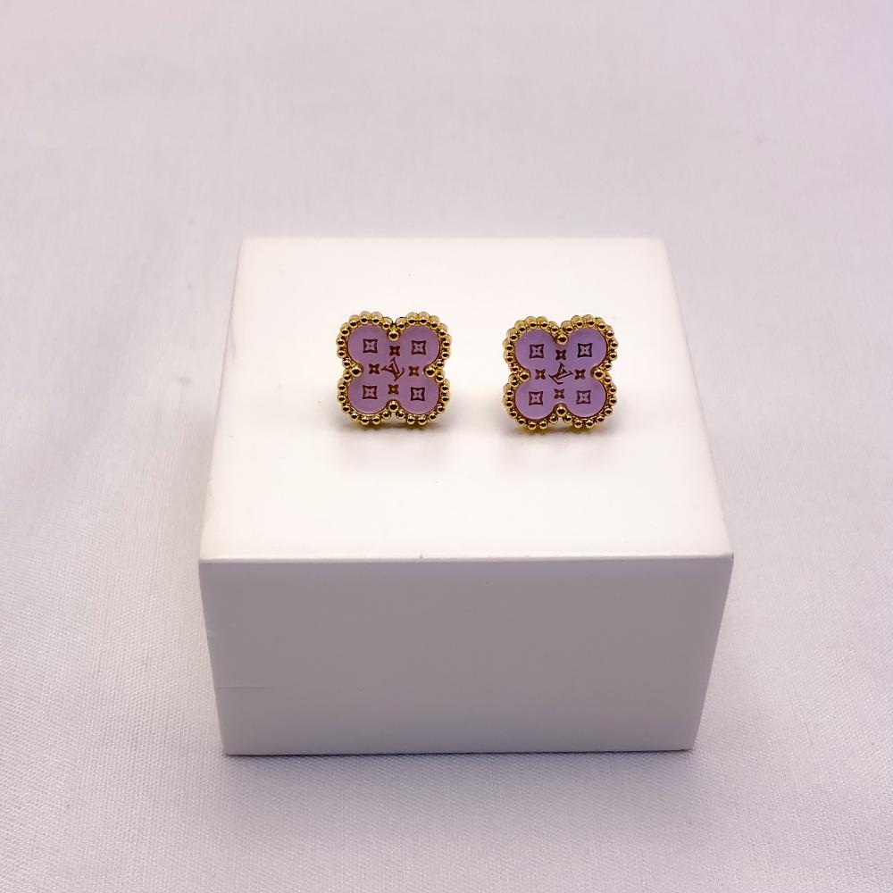 BRINCO AÇO INOXIDÁVEL TREVO ROSA - DOURADO
