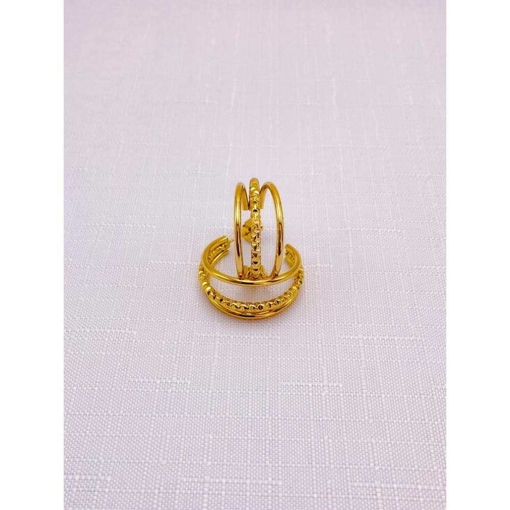 PRODUTO: BRINCO AÇO INOX ARGOLA 3 FIOS COM DETALHES - DOURADO