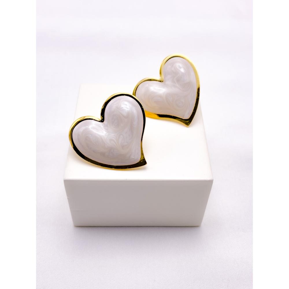 PRODUTO: BRINCO AÇO INOX CORAÇÃO PEROLADO - DOURADO