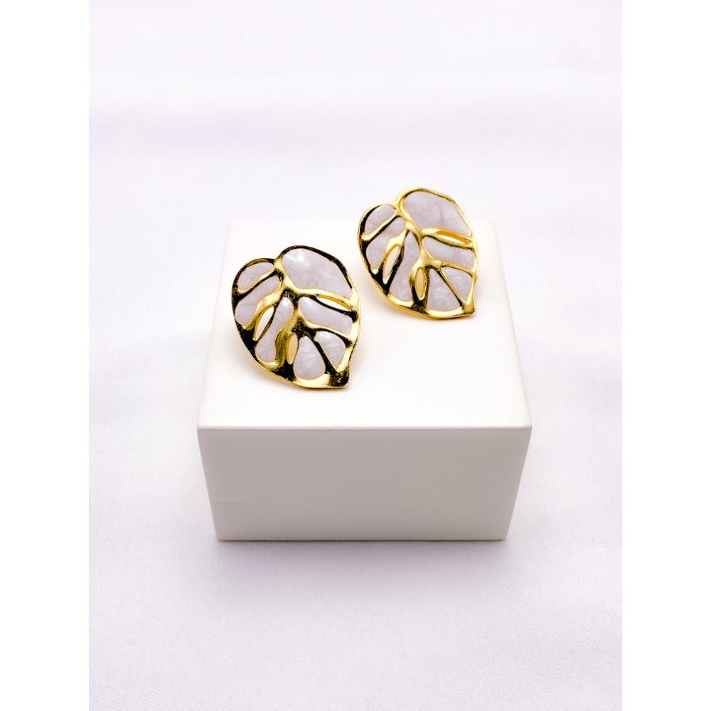 PRODUTO: BRINCO AÇO INOX FOLHA PEROLADO - DOURADO