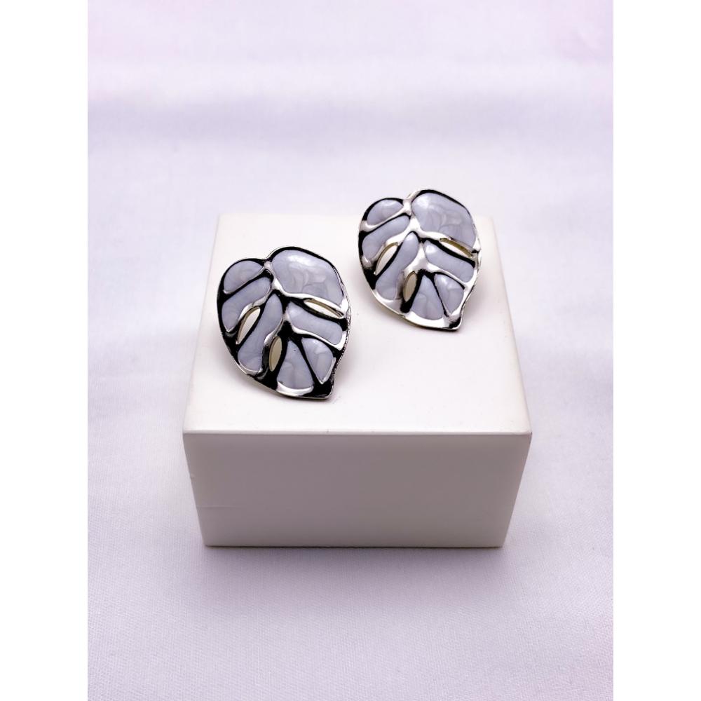 PRODUTO: BRINCO AÇO INOX FOLHA PEROLADO - PRATEADO